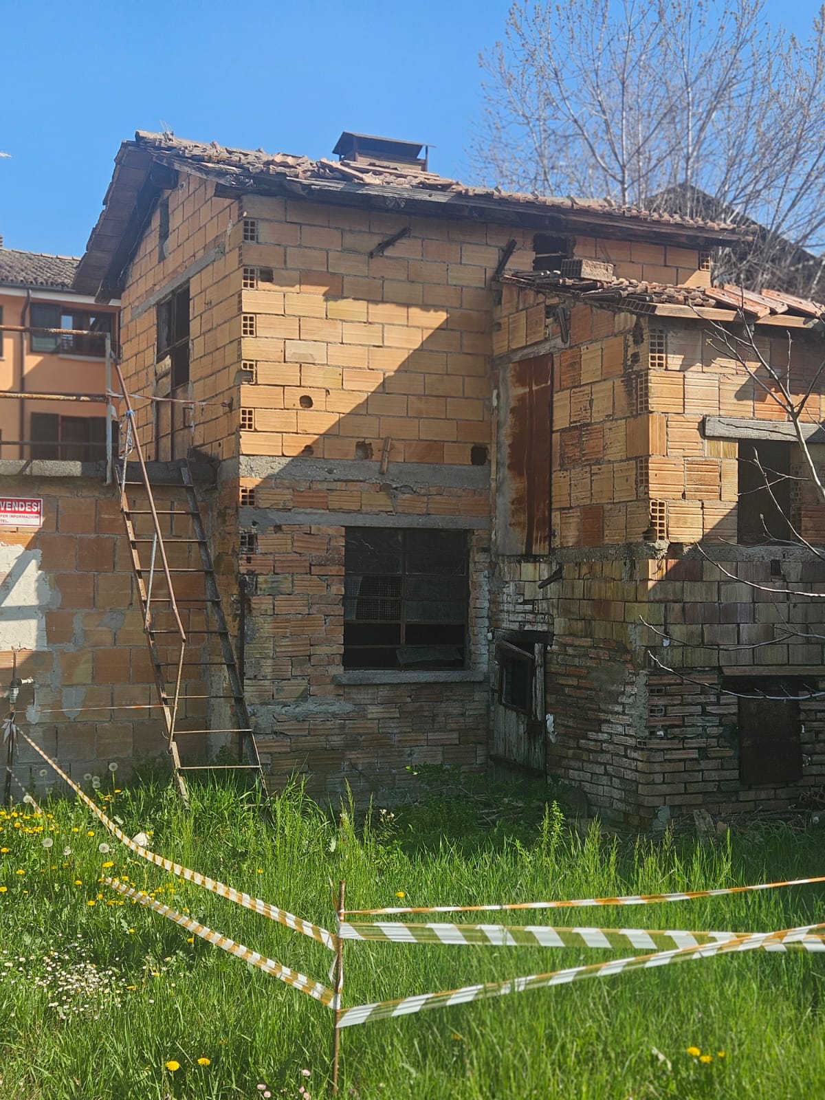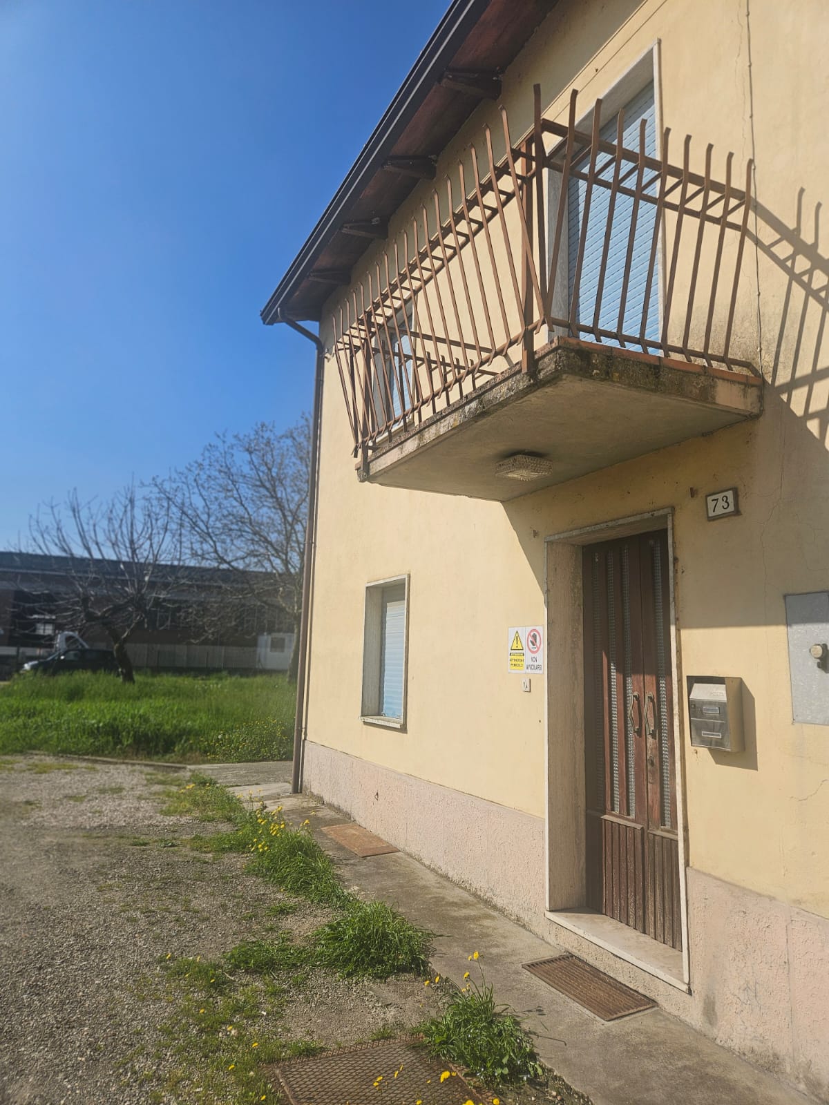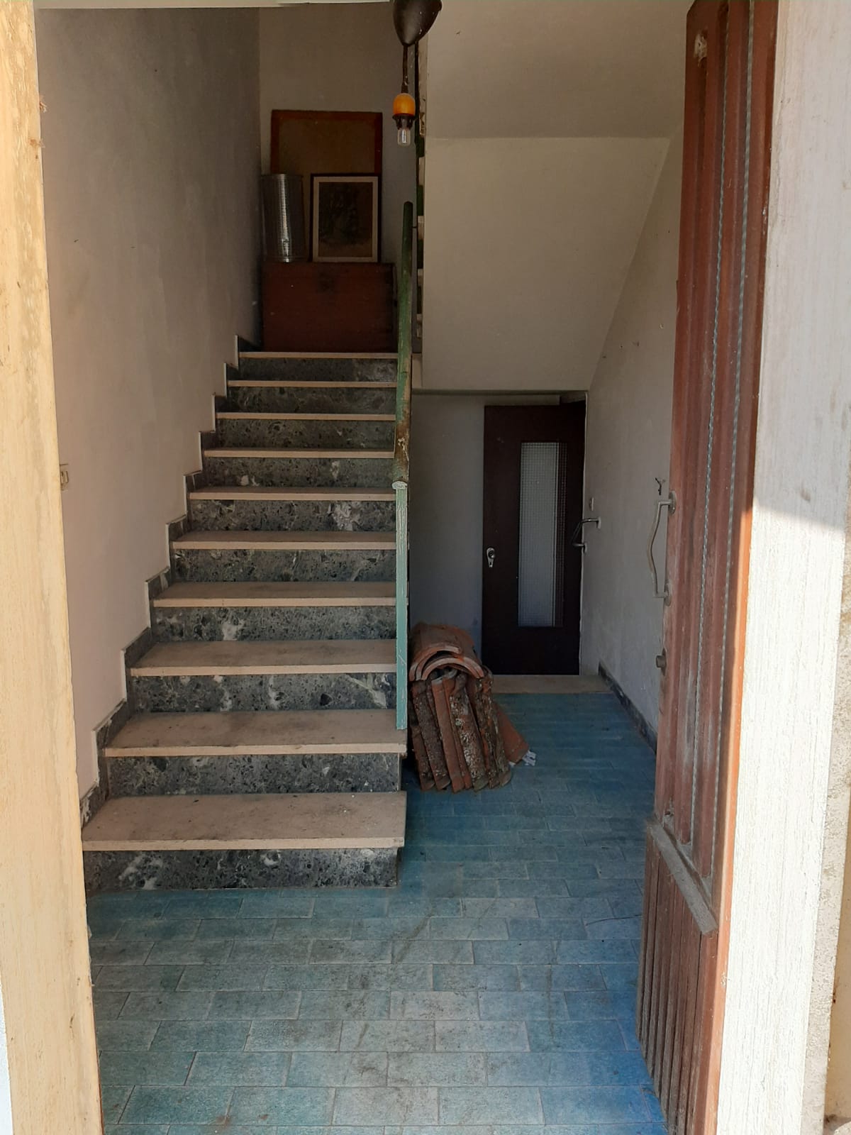 Porzione di casa su due livelli più sottotetto, internamente tutta da ristrutturare di 122 mq. totali, con verde privato recintabile oltre basso servizio, anche esso da ristrutturare, con annessa area pertinenziale.