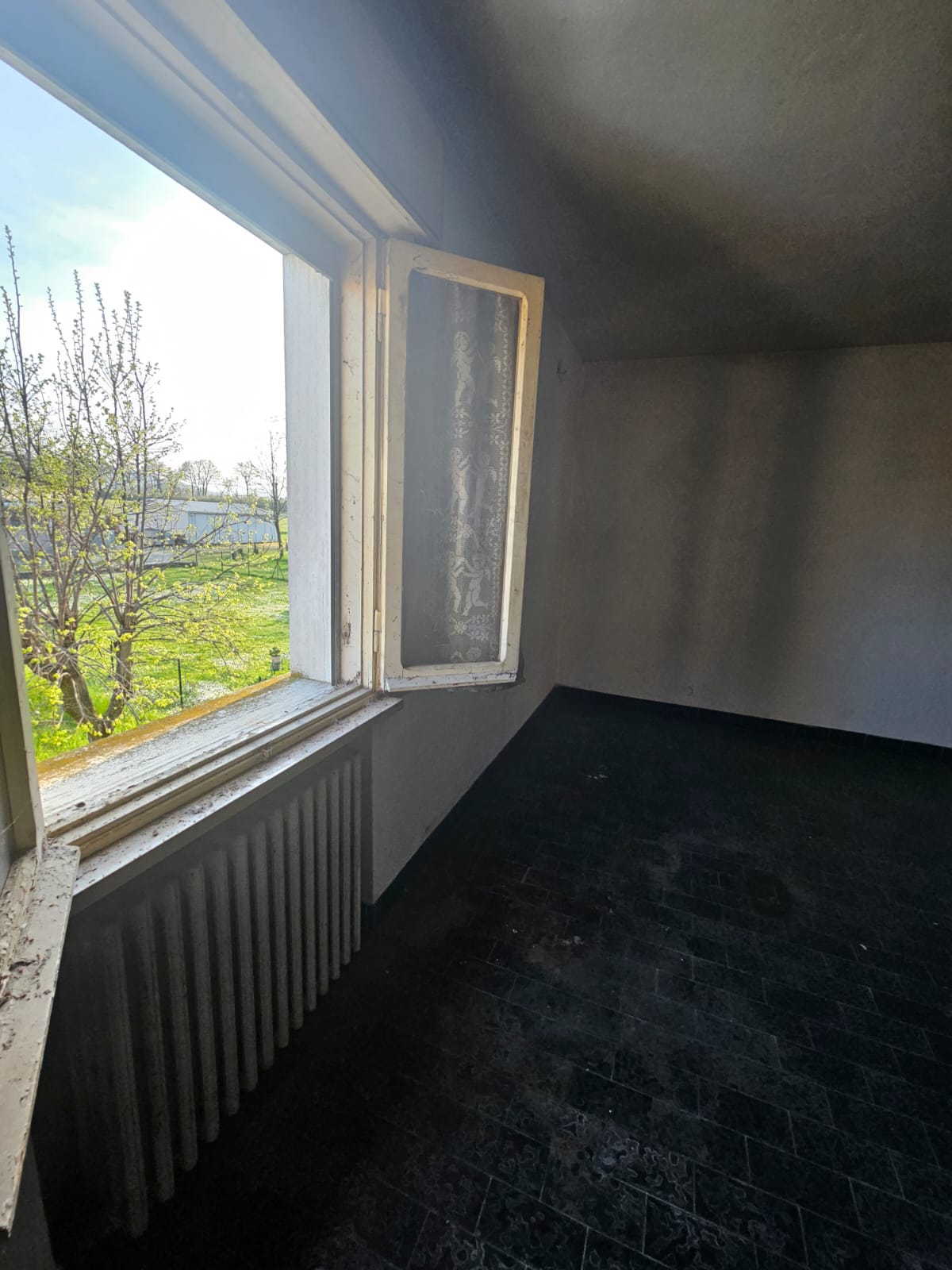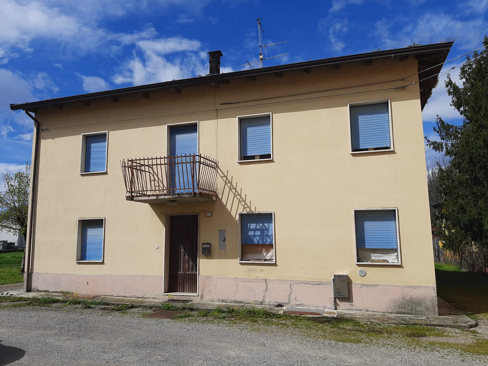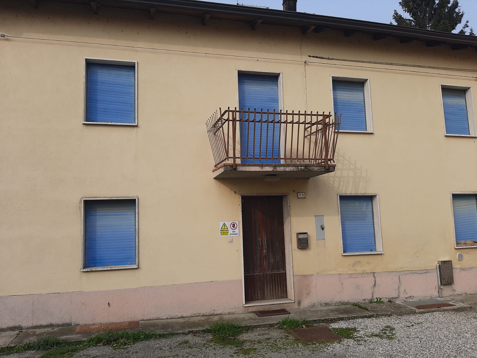 Porzione di casa su due livelli più sottotetto, internamente tutta da ristrutturare di 122 mq. totali, con verde privato recintabile oltre basso servizio, anche esso da ristrutturare, con annessa area pertinenziale.