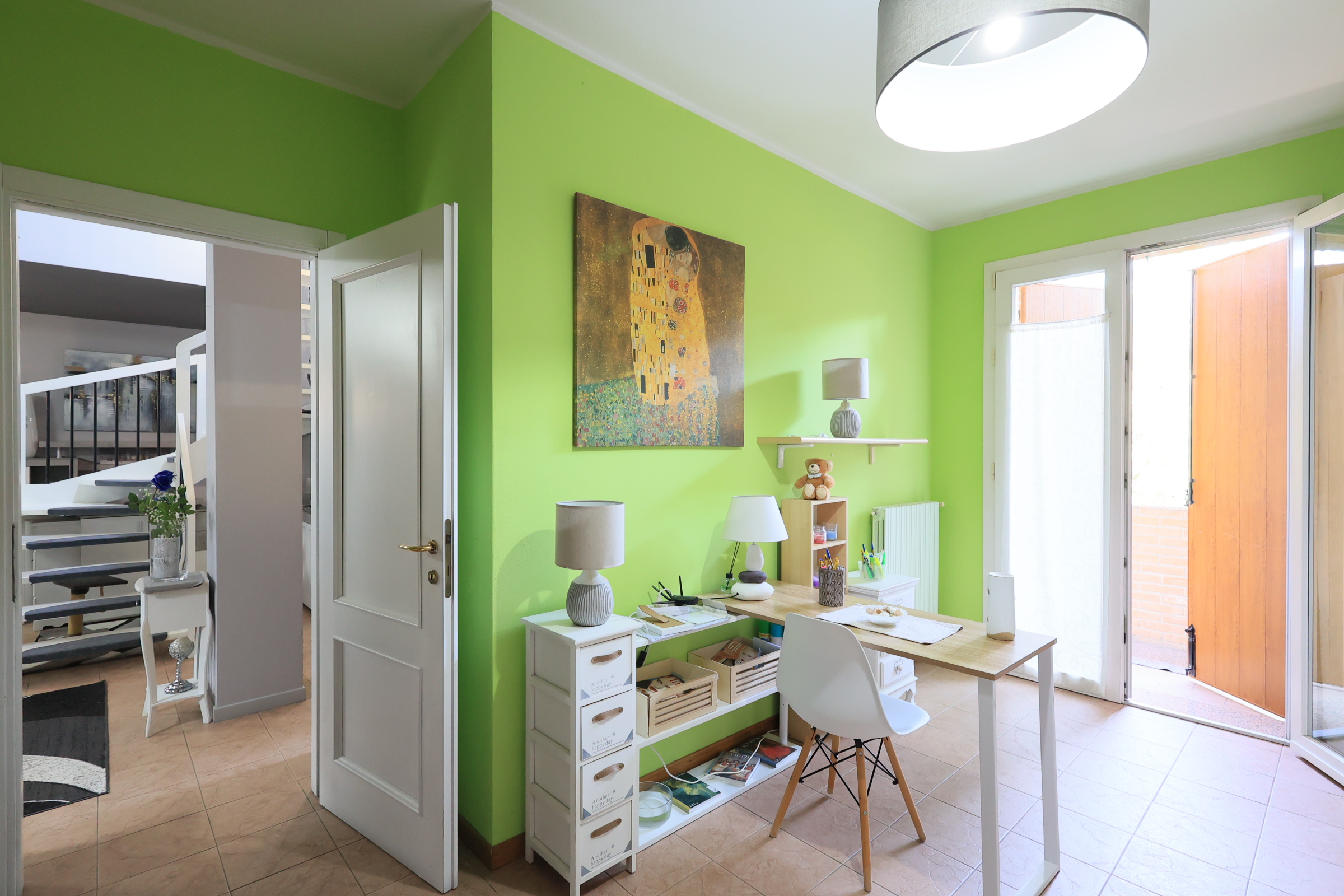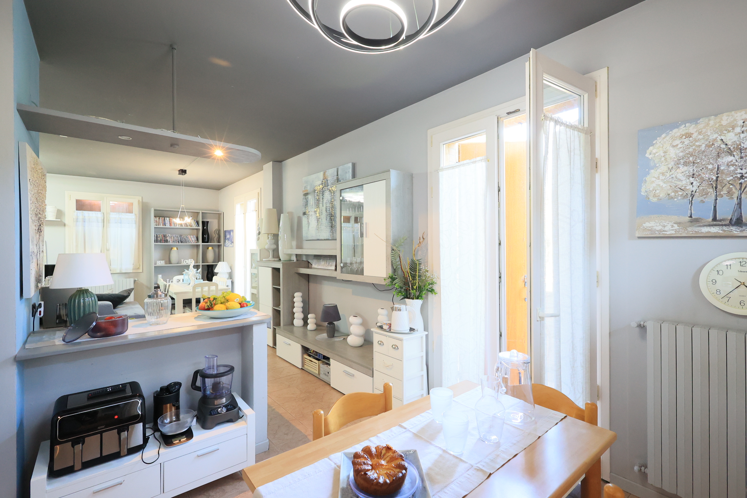 Il primo piano è composto da ampio e luminoso soggiorno con cucina abitabile e balcone, un bagno, un locale lavanderia ed una camera matrimoniale.