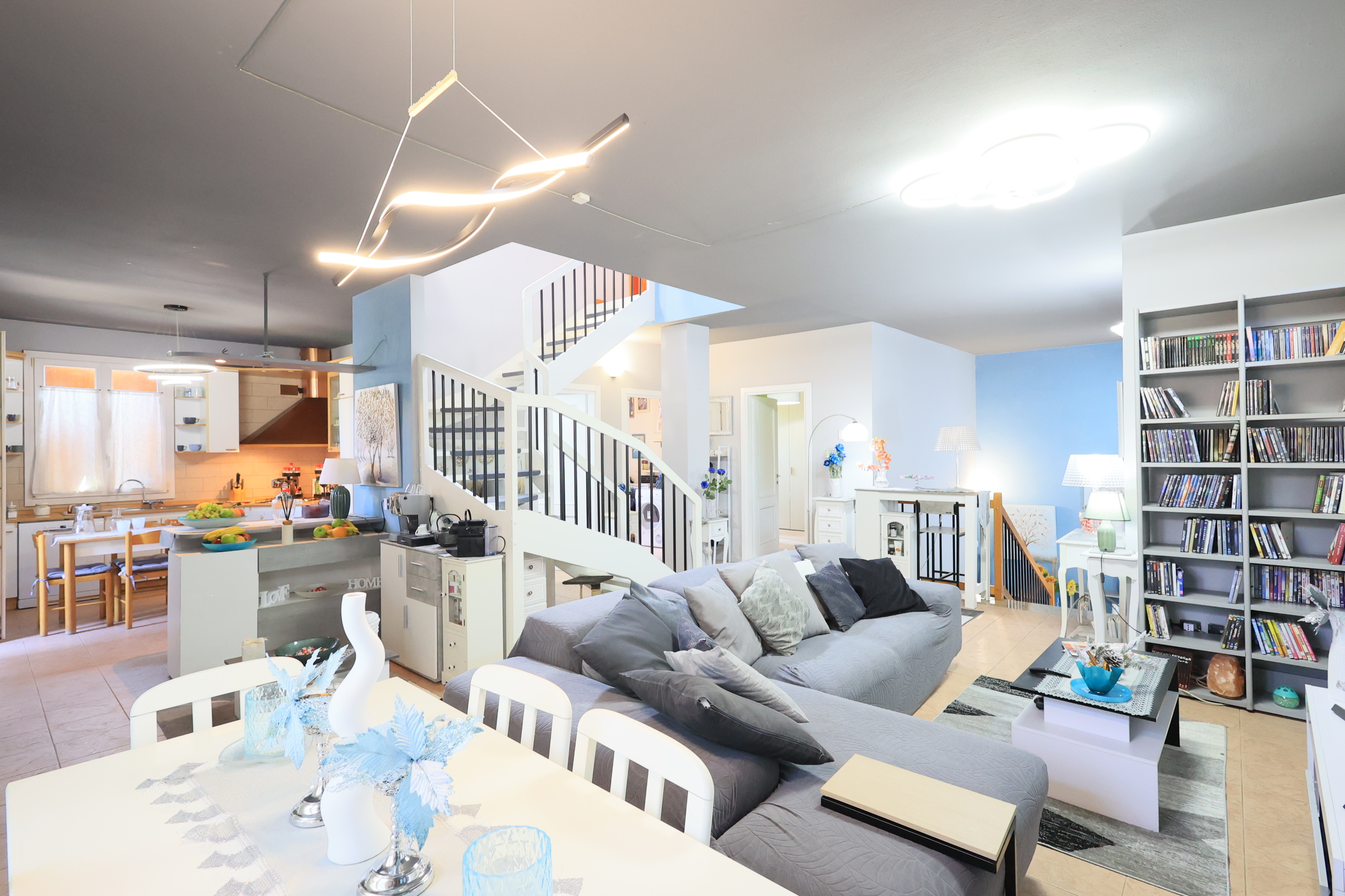 Al secondo piano vi sono invece 3 camere da letto, di cui 2 con cabina armadio ed un bagno.
